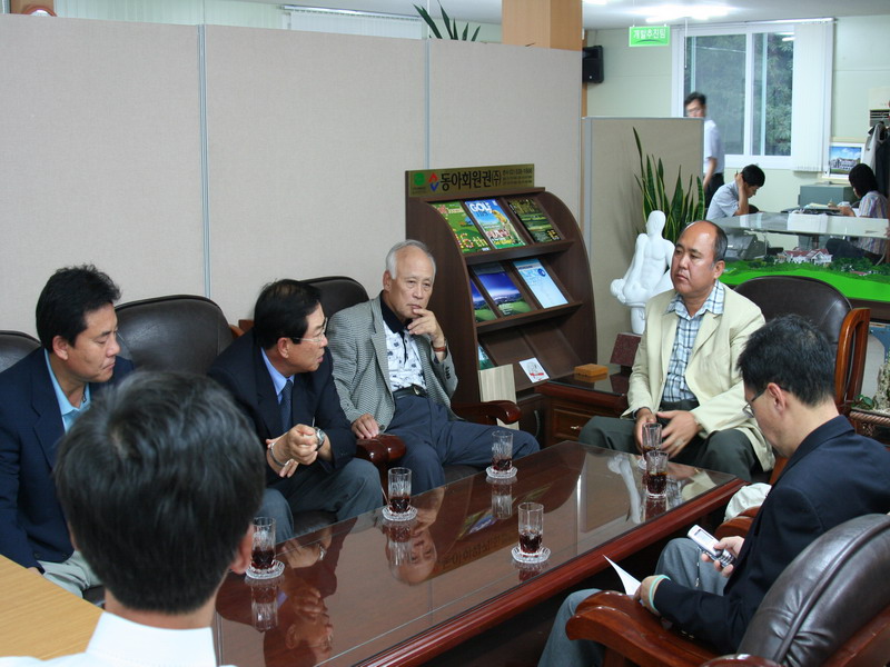 코스레이팅을 마치고 김재봉회장과 협회 코스레이팅 위원들은 분석된 파인리즈컨트리클럽 코스 데이타에 대한 설명과 원인 분석을 하고 있다.