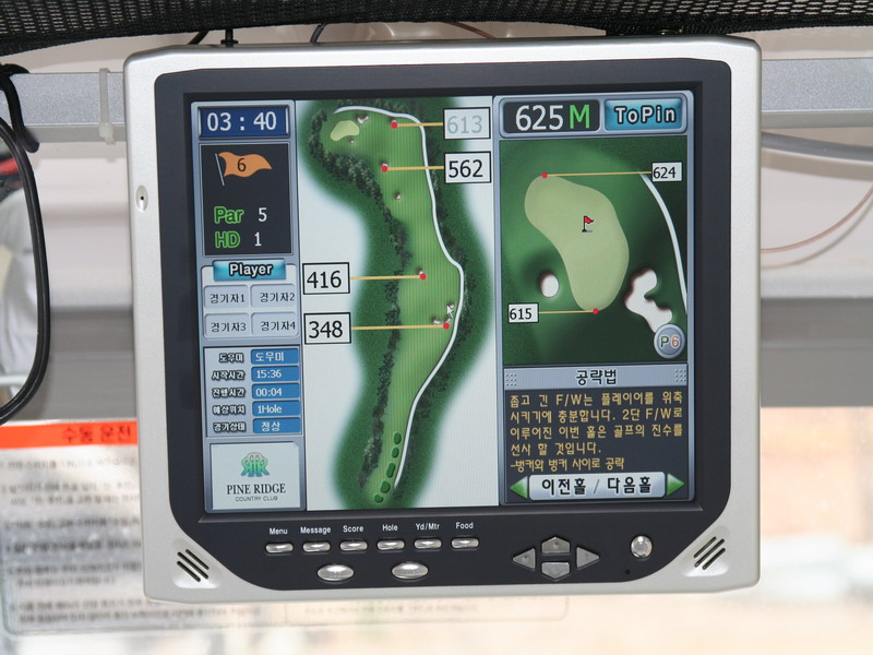![]() 파인리즈C.C는 최첨단 장비인 GPS시스템을 도입하여 운용할 계획이다. GPS는 위성에서 보내온 신호를 받아 현재의 위치를 확인할 수 있는 장비로 군사목적으로 사용하던 것을 공개하여 여러 분야에서 폭넓게 사용되고 있다. 파인리즈 C.C는 GPS 시스템을 이용하여 고객의 라운딩 시간과 위험지역 및 코스설명등 골프장 코스에 대한 정보를 보다 쉽고 빠르게 전달할 수 있게 하였으며, 현재 5인승 카트에 장착하여 테스트 중에 있으며 2인승 카트에도 설치하여 전체 코스에서 사용될 것이다. |