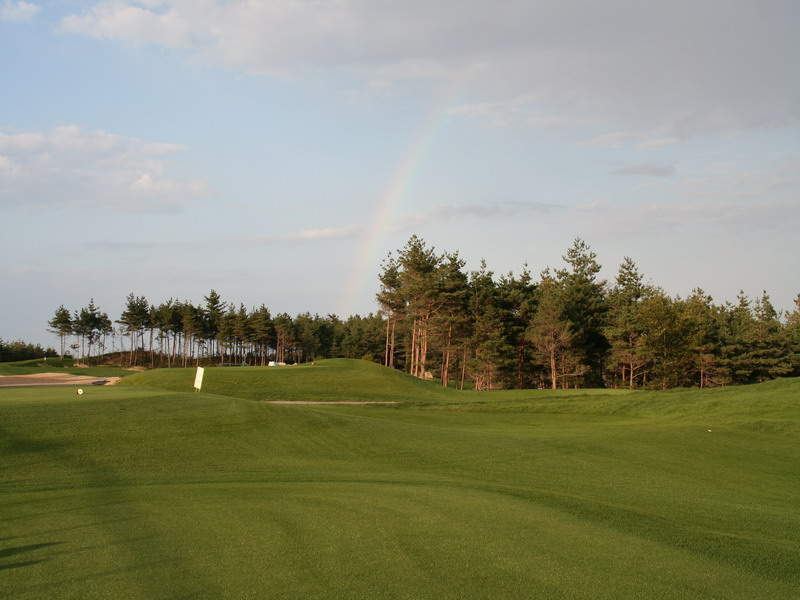 파인리즈 C.C의 하늘에 무지개가 떴다. 10월 11일 VIP 초청 라운드 준비가 한창인 파인리즈 C.C의 앞길을 밝혀주기라도 하듯이 무지개는 아름다운 색을 뽐내며 하늘에 있었다.