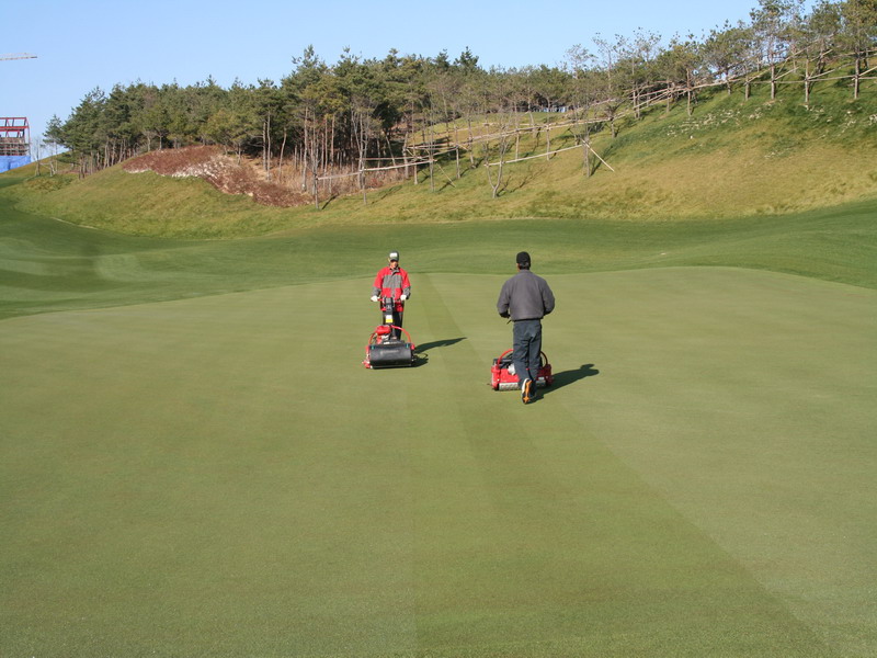 ![]() 그린모어로 1번 그린을 깍는 모습 최상의 그린을 만들기 위해 파인리즈 C.C의 코스관리부는 새벽 같이 작업을 하고 있다. 잔디는 기르는것도 중요하지만 어떻게 관리를 하느냐에 따라 잔디상태가 판가름나기에 최고의 잔디 전문가들이 모인 파인리즈C.C의 코스관리팀은 세계 10대 명문골프장으로 만들기위해 추운 날씨에도 비지땀을 흘리며 일하고 있다. |