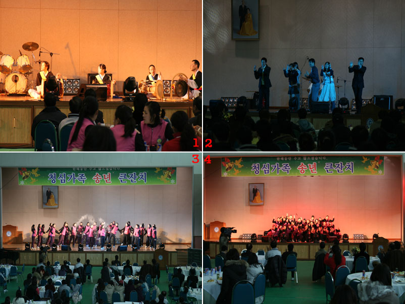 ![]() 1. 풍물패의 신명나는 한마당. 2. 재미있는 연극무대. 3. 아름다운 하모니를 보여준 파인리즈 C.C의 캐디들. 4. 마무리를 하며 끝없는 박수갈채를 받았습니다. 시간이 지날수록 그동안 준비했던 모든 것을 보여주며, 참석한 모든 가족들에게 풍물패의 신명나는 우리가락과, 가끔은 실수를 하며 보여준 재미있는 연극 무대. 이날 송년회에서 최고의 하일라이트는 파인리즈C.C의 캐디들이 준비한 무대였습니다. 짧은 기간에 밤을 새가며 입을 맞추고 안무를 하였기에 그들의 노력과 함께 보낸시간은 보는 이로 하여금 감탄사를 절로 자아내게 할 정도로 뛰어난 무대를 만들어 내기에 충분하였습니다 |