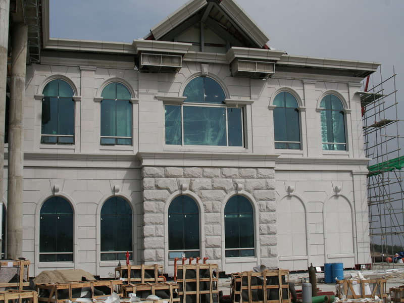 외벽 공사 마무리가 한창인 클럽하우스는 곳곳에서 본연의 아름다움이 드러나고