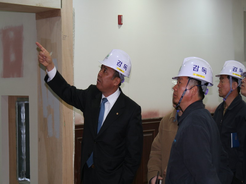 ![]() ◈ 인테리어 작업을 보시는 회장님. 3월 27일 회장님의 현장 방문이 있었습니다. 구석구석 꼼꼼하게 살펴보시고 작업중인 인터리어에 좀더 신경써 주기를 바라며 완성도 높은 작업을 해달라고 부탁의 말씀을 전하였습니다.