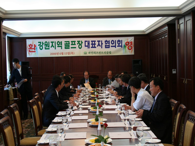 ![]() 파인리즈C.C를 비롯한 18개 강원지역골프장 대표 및 임원이 모인 이날 대표자회의에서는 그 동안 베일에 싸여있었던 클럽하우스와 코스를 선보이는 첫 자리였습니다. 강구할 수 있는 뜻 깊은 자리였습니다. 저녁 만찬에서는 라운드 후 코스의 아름다움과 전체적인 소감들을 말씀해주셨으며, 웅장한 클럽하우스는 이날 회의에 참석한 모든 분들을 감탄하게 만들었으며, 이처럼 좋은 골프장을 건설해준 또한 우승, 준우승, 메달리스트, 롱게스트, 니어리스트등 각 부분에 걸친 시상도 함께 이루어 졌습니다. 지역발전과 더불어 함께 발전하는 골프장 문화에 앞장설 것이라고 말씀하셨습니다.