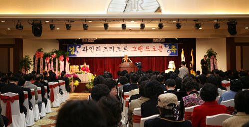 리조트 내 대연회장에서 열린 그랜드 오픈 기념행사에는 세계평화통일가정연합 문선명 총재 부부가 참석했으며, 양창식 세계평화통일가정연합 한국회장, 송훈석 국회의원, 황종국 고성군수 등 각계 인사 300여명이 참석했다.