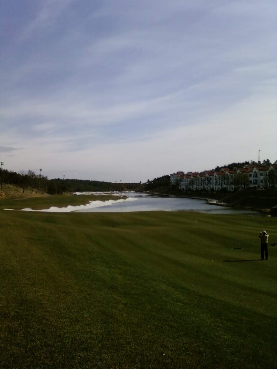 맨날 눈팅만 하다가... 지난 주 금, 토요일 파인리즈 갔다가, 나름 오랜만에 받았던 좋은 느낌 받고와서 적어봅니다. 물론 카페 송년회하는 날이었죠..   2일 동안 3개 코스 다 돌아뵜는데, 전체적으로 통일교와 관계된 곳이라서인지 규모있는 투자를 바탕으로 잘 만들어졌고, 앞으로 더 좋은 골프장 중 하나로 인정 받을 것이라고 이구동성으로 칭찬 있었습니다.   특징은 전코스에 맥반석으로 기초공사를 했다고 하고, 대부분 코스에 벙커와 헤저드가 많다는 점... 벙커에는 모래대신 모두 하얀 규사를 깔아 명문을 지향하는 의지가 확실히 느껴졌습니다. (사진으로 보이는 하얀 곳들이 모두 벙커입니다. 눈 쌓인게 아니고...)   마침 카메라가 없어 마지막 날 핸드폰으로 몇 컷 해봤는데, 평범하다고 느끼게 하는 코스는 하나도 없었던 것 같습니다. 티박스에 서면 벙커, 헤저드만 잔뜩 보인다던지(벙커 무지하게 많죠). 러프지역은 말 그대로 볼 들어가면 찾기 어렵거나 언플레이어블 감안해야 할 정도더라구요. 그린도 어려운 편이라고들 인정했습니다.   마지막 압권은 레이크코스 마지막에 있는 630m 파 5 입니다. 사진 3, 4번째인데, 티샷 아일랜드에서 그린까지 3온이 어렵도록 만들어 놓은 곳이라 파해도 잘한다고 하는 곳이죠... 한쪽으로 헤저드와 벙커가 그린 앞까지 이어지고...그 뒤로 쭉이어지는 콘도 건물들...그림 좋았습니다.   인상 깊었던 골프장이었고 미시령 넘어 그 곳까지 가는 이유가 나름대로 설명되는 곳입니다. 그리고, 클럽하우스 음식이나 커피값이 현실적이라는 점(커피 2,000원, 사골우거지 6,000원)도 괜챦고, 1박했던 콘도나 별도로 운영하는 스파도 아주 만족스러웠습니다.   혹시 회원 분중에서 갈 계획 있으신 분은 나름대로 설레는 마음에 가셔도 별반 후회는 없을 듯 합니다. 1박하면서는 바닷가 회도 좋구요.   다만, 전체적으로 캐디수가 모자라 저희는 2일째는 노캐디로 했는데, 참고로 여긴 티칭 자격증가진 프로캐디도 있습니다.   이상 즐거운 주말 보냈던 후기였습니다...