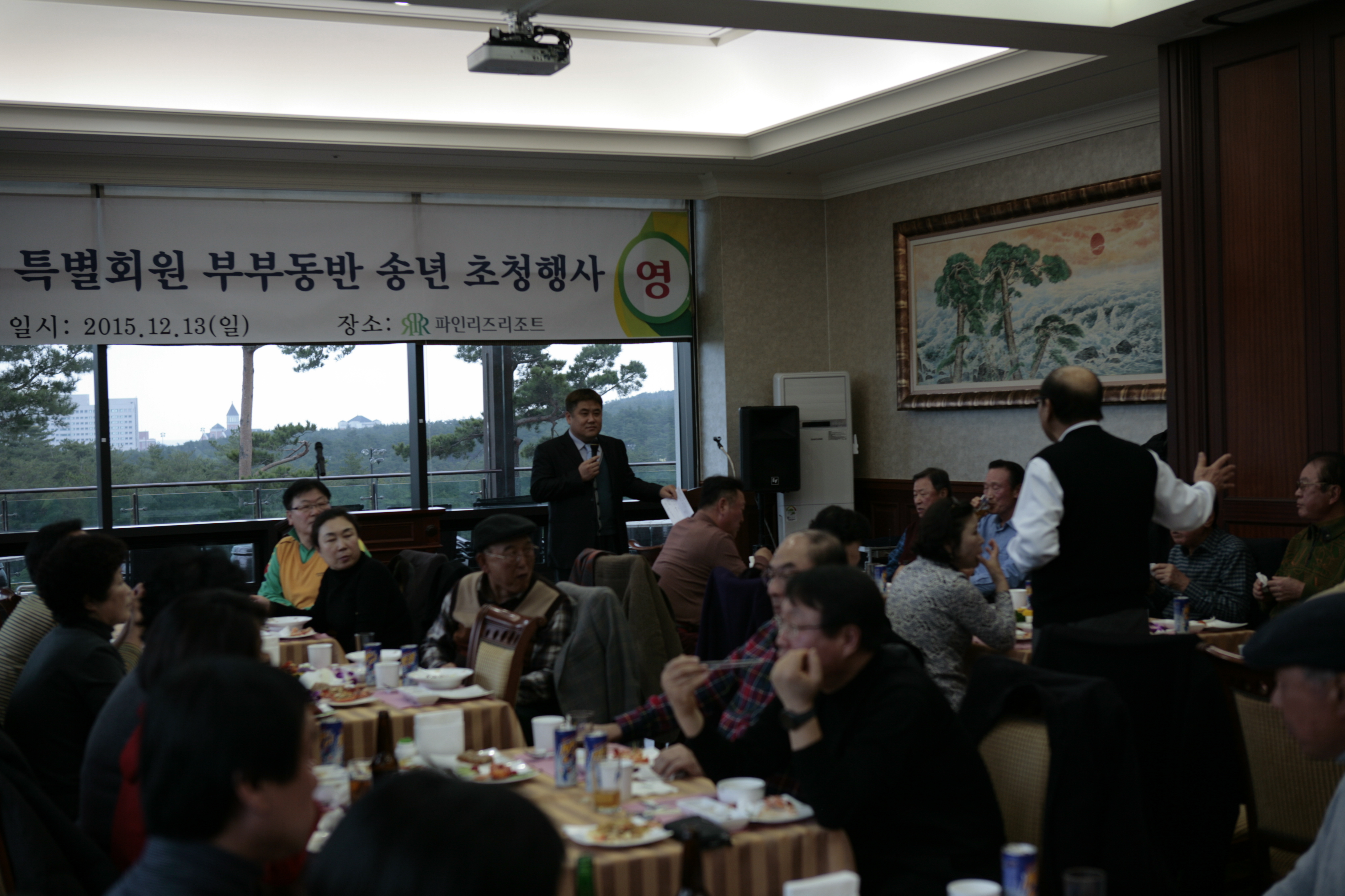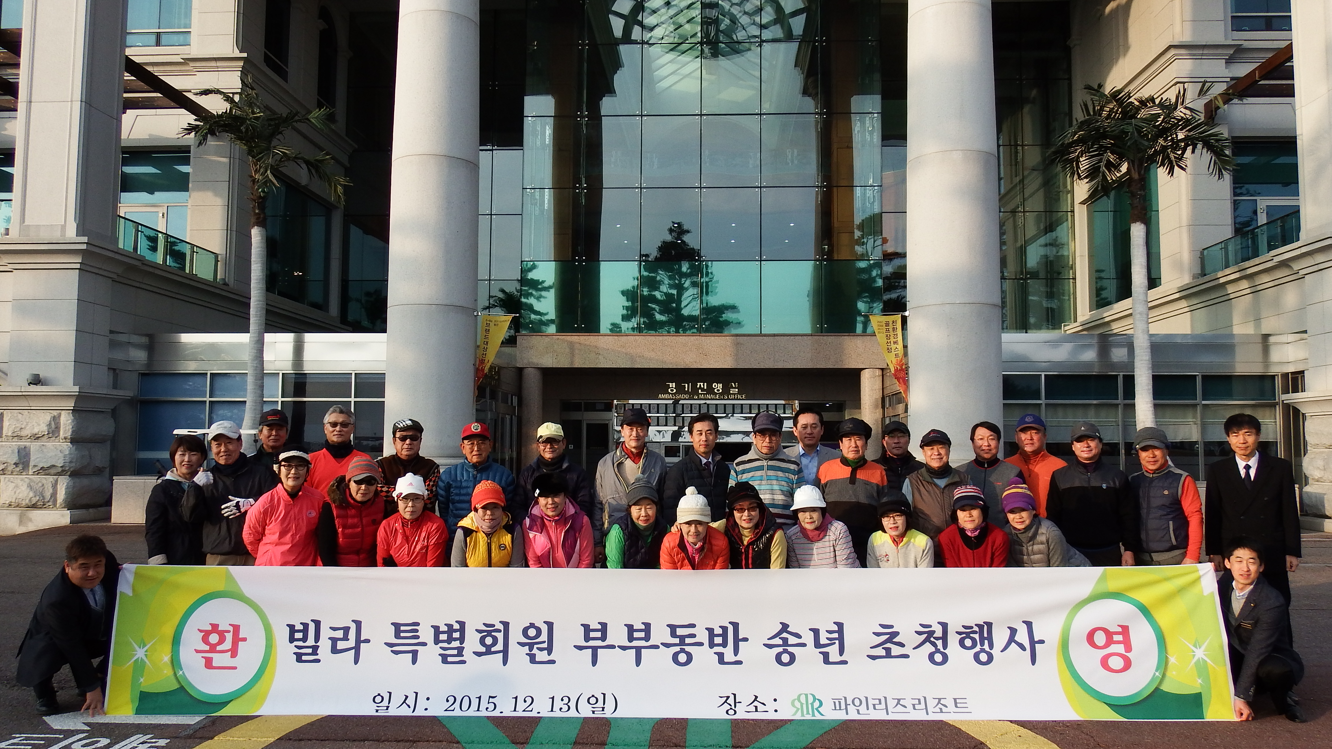 파인리즈리조트(www.pineridge.co.kr)에서는 2015년 12월 13일 빌라 특별회원 부부를 초청하여 송년행사를 진행하였다. 파인리즈리조트 빌라 특별회원은 창립부터 함께해주신 회원분들을 주축으로 약 40명가량으로 운영되고 있으며, 금번 행사에는 동반하신 배우자분들을 포함하여 약 30여명이 참석해주셨다.