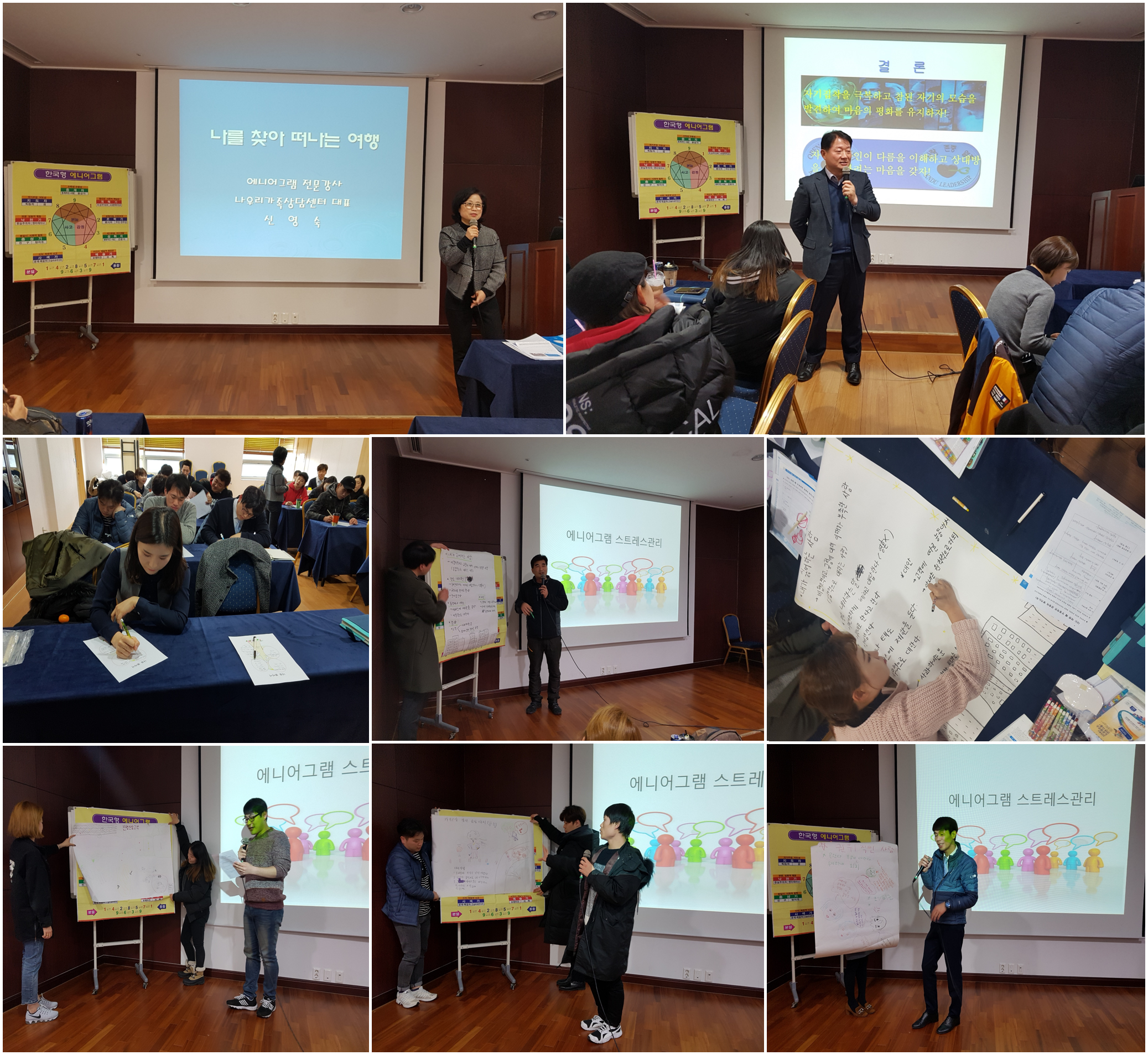 [파인리즈 직원교육] 나를찾아 떠나는 여행 !!! 2018년 2월9일 오전11시부터 오후 6시까지 파인리즈리조트 직원을 위한 교육이 있었습니다. 집단상담 전문 강사님이신 신영숙 강사님께서 수고해 주셨습니다. 성격유형 검사인 에니어그램을 통해 자신을 발견하고 나와 다른 타인의 성격유형을 이해함으로써 관계개선 능력과 관계를 통해 생기는 부정적인 감정관리법을 익힐 수 있는 시간 이였습니다. 모든 직원들의 적극적인 참여로 많은걸 배울 수 있는 뜻깊은 시간이였습니다. |