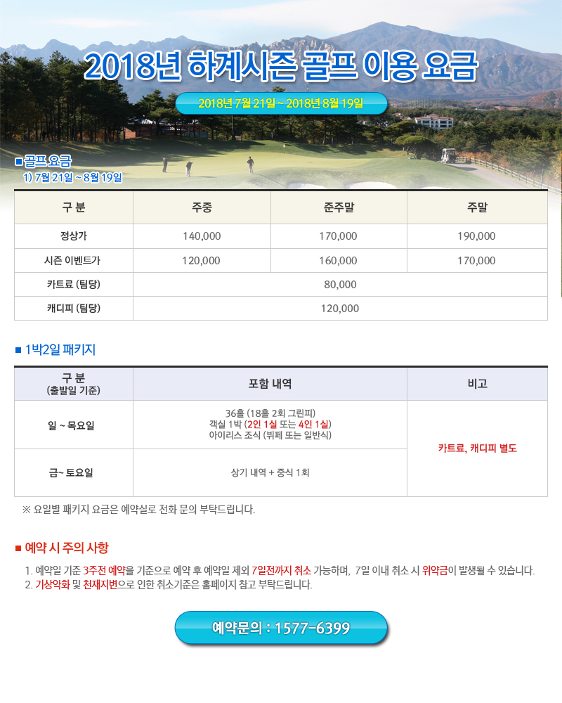 2018년 하계시즌 골프 이용 요금 안내