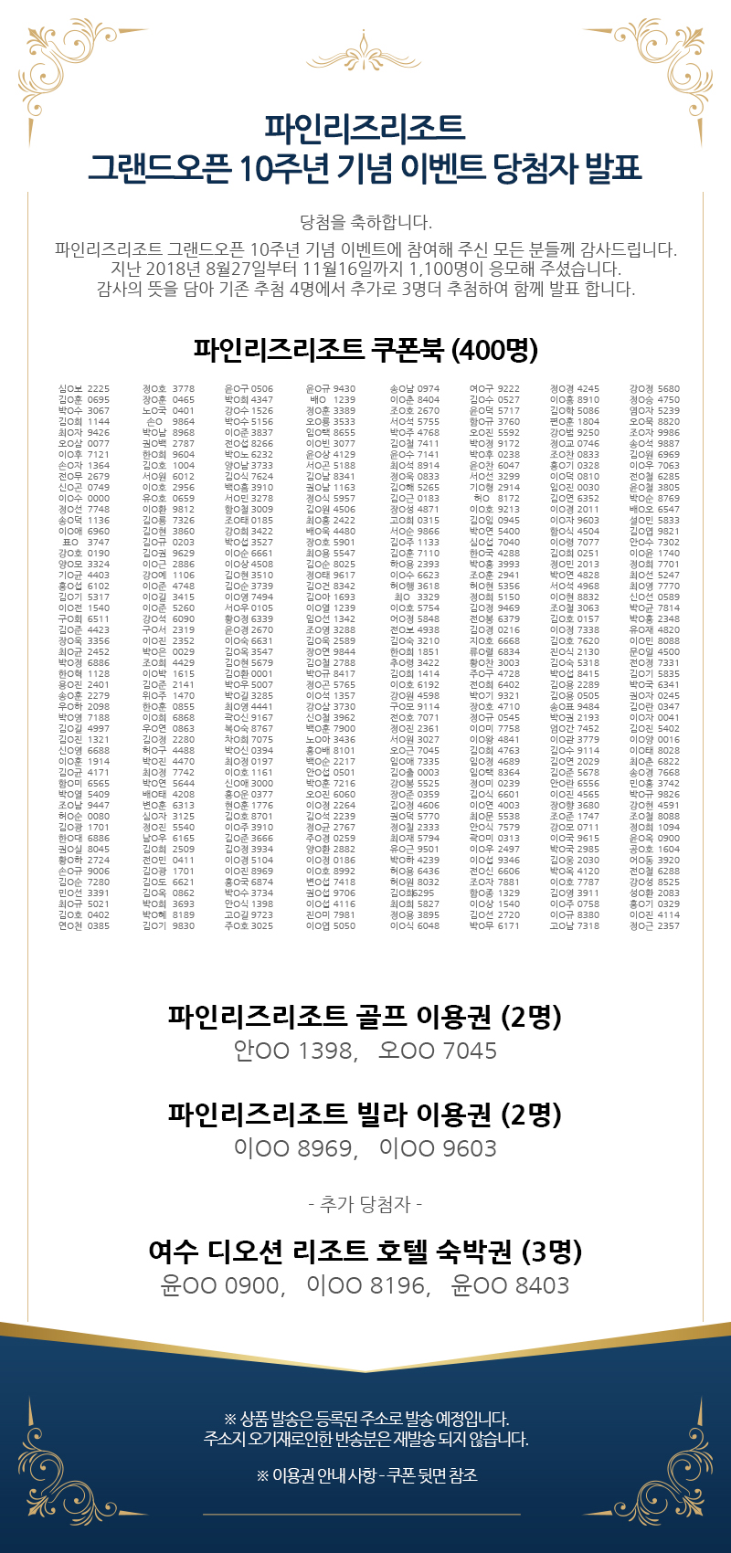 그랜드오픈 10주년 기념 이벤트 당첨자 발표