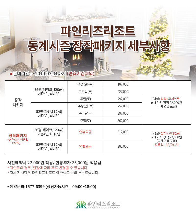 파인리즈리조트 2018-2019 겨울시즌 벽난로 장작 패키지 판매