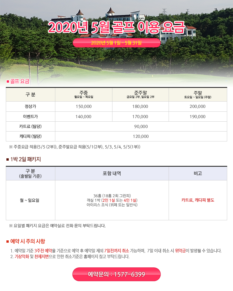 2020년 5월 골프 이용 요금 안내