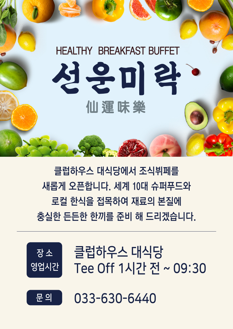 클럽하우스 대식당 조식뷔페 리뉴얼 오픈 안내