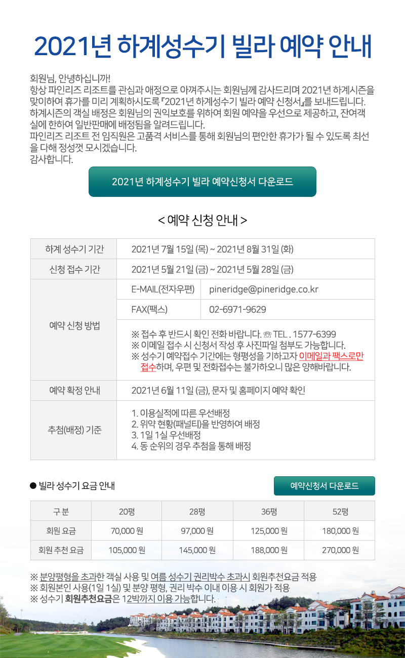 [종료] 2021년 하계성수기 빌라 예약 안내