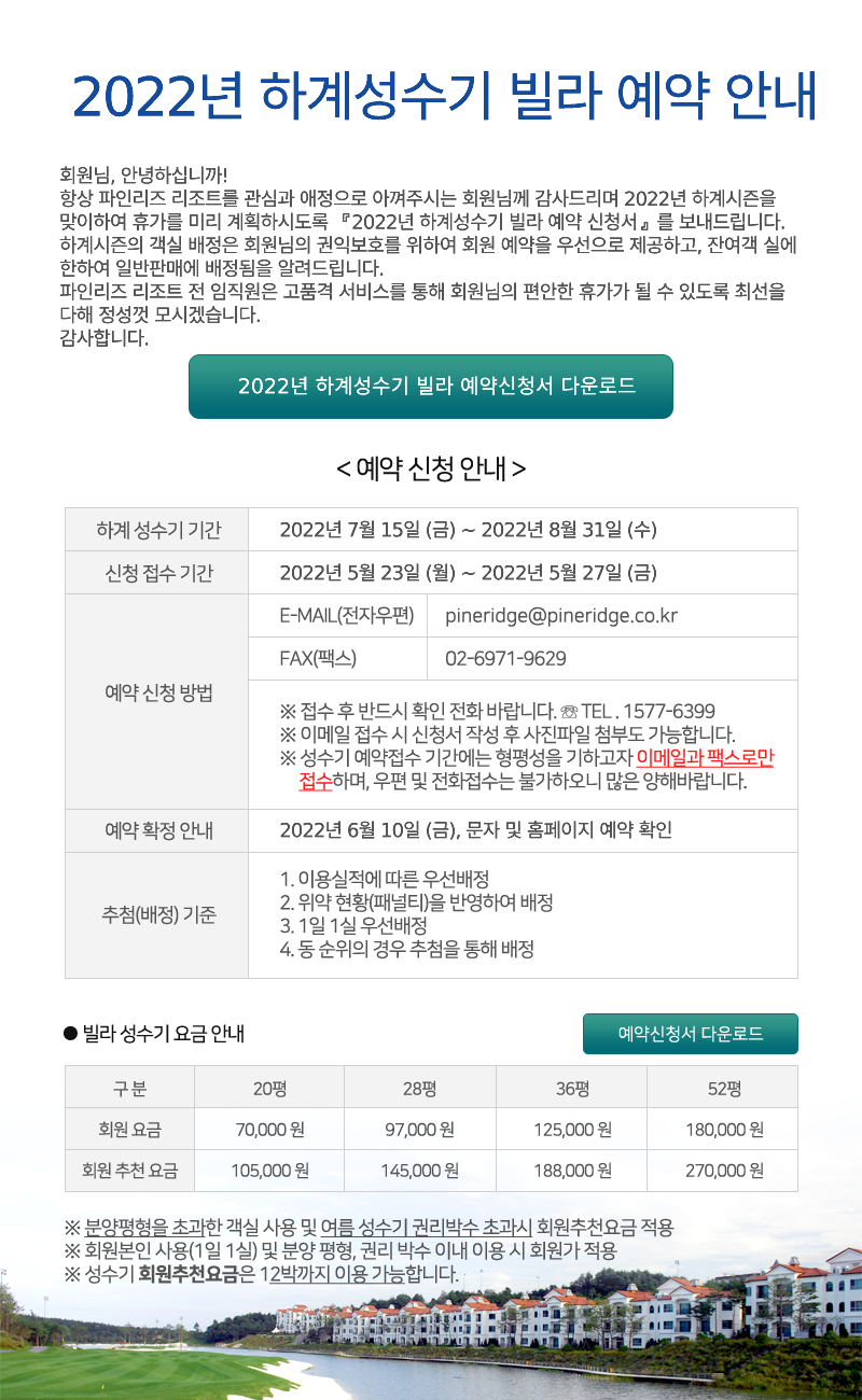 2022년 하계성수기 빌라 예약 안내
