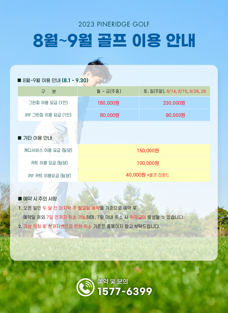 2023년 8~9월 골프 이용 안내