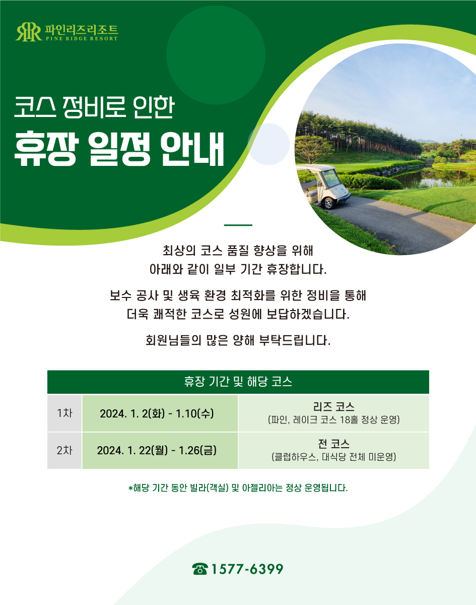코스 정비로 인한 휴장 일정 안내