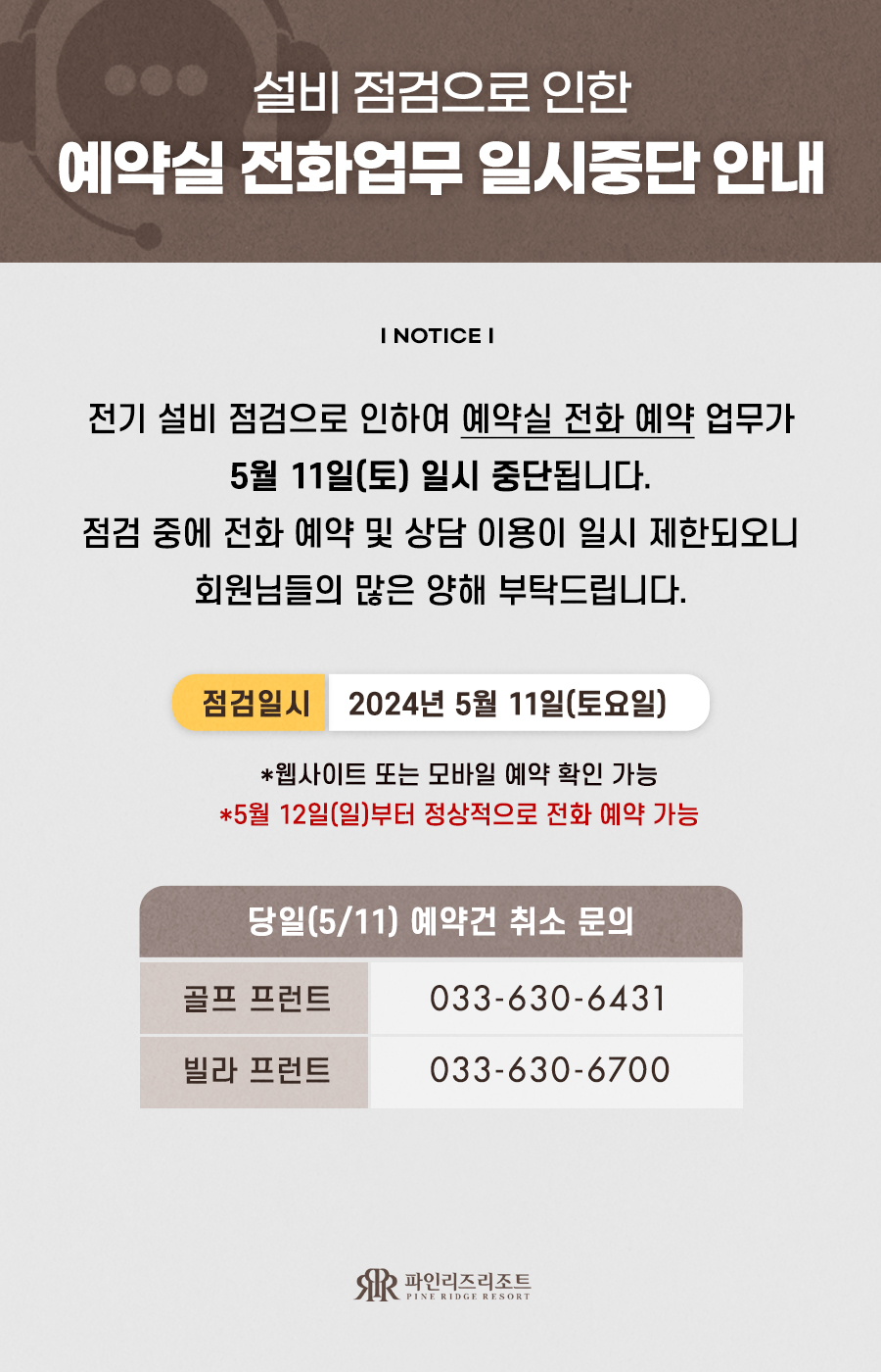 5/11(토) 예약실 전화 업무 중단 안내