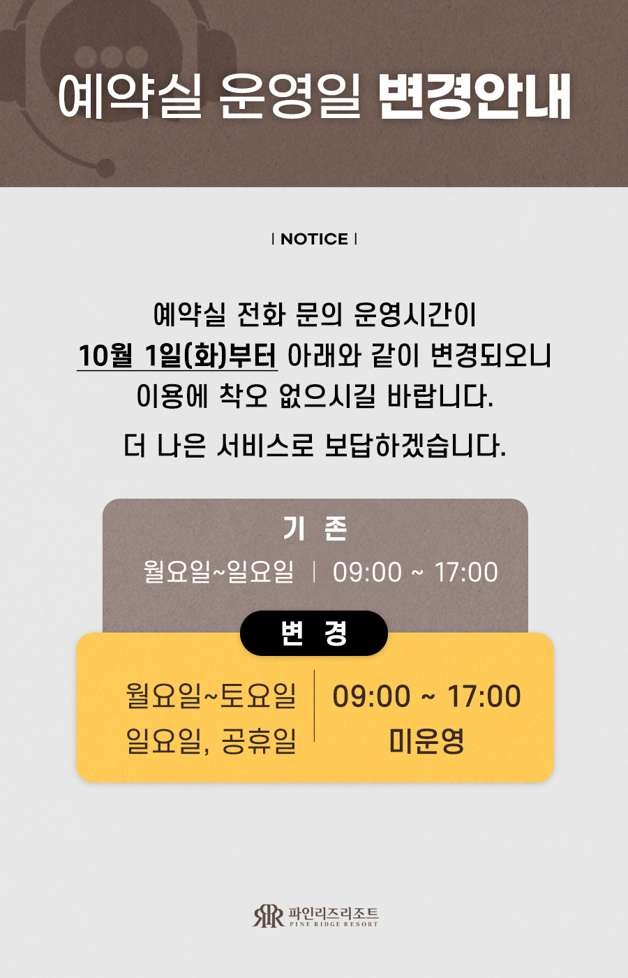 [안내] 예약실 운영일 변경 안내(10.1 ~ )