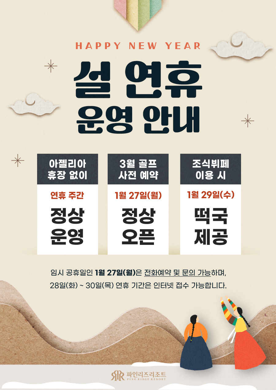 [안내] 설연휴 아젤리아 운영 안내(12.31~1.2)
