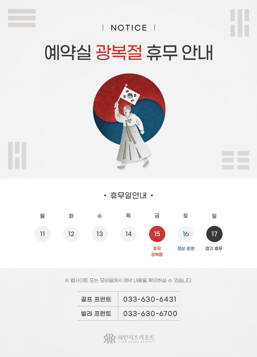 [안내] 예약실 광복절 휴무 안내(8.15)