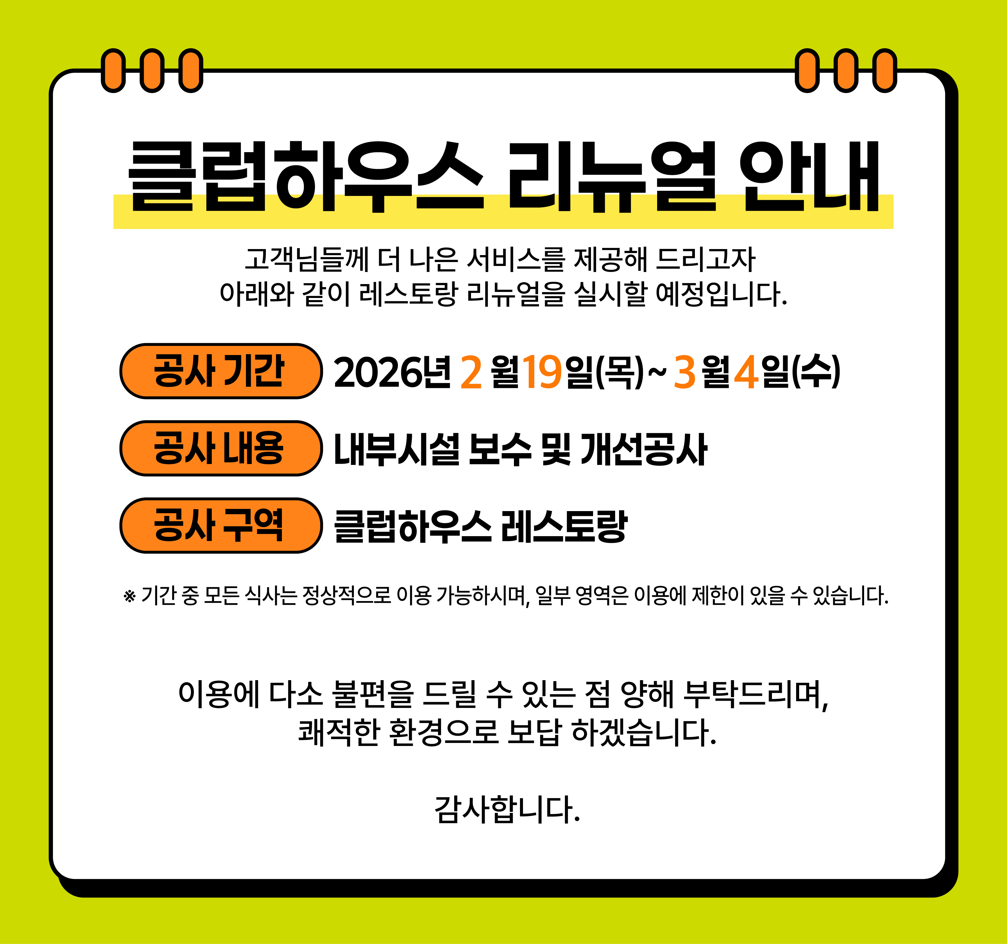 클럽하우스 리뉴얼 안내